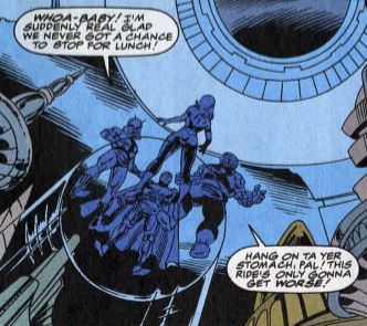 Fade out: Sue lifts the team to the highest point of Attilan on a force field, which wears her out to the point of exhaustion, even though we’ve seen her a lot more elaborate stunts with her force fields before. I guess they were fighting Inhumans for a long time before this issue started.