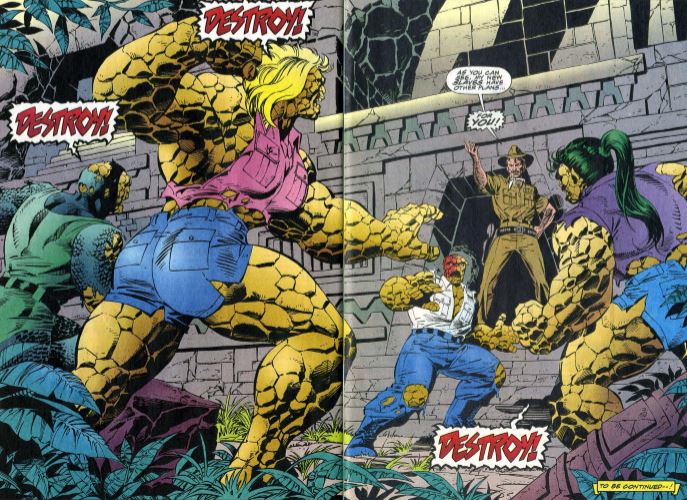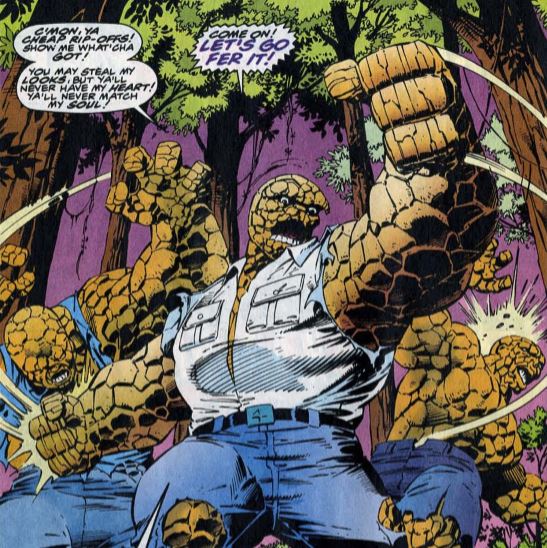 Clobberin’ time: Referring the enemies as “Spawn” feels like a cheap shot fired at Image comics, with a lot of talk during the fight about other Things are nothing but cheap imitations of the original. During the fight, Ben even says, “Image ain’t everything!”