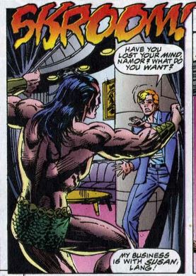 Fade out: The fight between Sue and Namor is an excuse for a rage-filled Sue to call out Namor on his years of creepy behavior, including his trying to take advantage of her as she mourned for her dead husband.