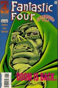 It’s a short fight, as Hyperstorm wipes the floor with the FF. He then threatens to reveal to them the final fate of Reed Richards, by having the heroes “join him!” There’s a huge blast of hyper-power, and the FF appear to be reduced to nothing but dust. If this wasn’t enough of a cliffhanger, turn the page and we learn that Kristoff’s signal reached Dr. Doom, who has regained his intellect, and is already plotting his revenge.