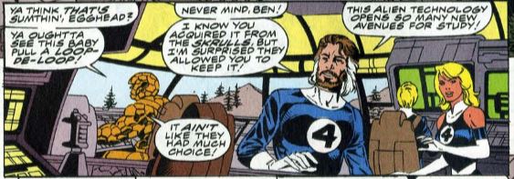 Unstable molecule: This issue is all about Reed playing catch-up on everything he missed while he was “dead.” He’s fascinated by all the FF’s new tech, and he’s struggling to get used to Sue leading the team in his place.