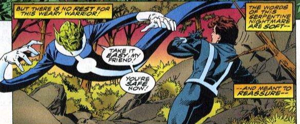 The Alicia problem: Lyja acts as Nathaniel’s assistant as a pretense to get info from him, calling back to her Skrull spy training.