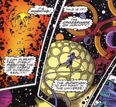 In addition to all the 2099 stuff, this issue also takes us to the Crossroads of Infinity, made famous in one of the all-time great Hulk story arcs, from Incredible Hulk #300 to #313.