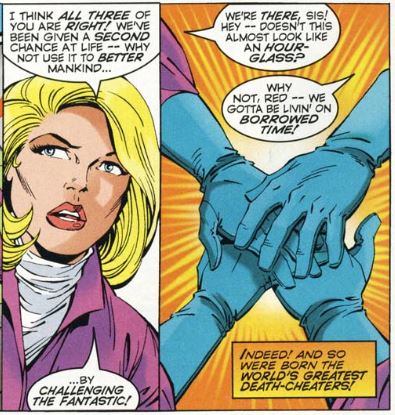 There’s a short version of the group’s origin. They take off on a dangerous space mission, only for it to be sabotaged by their former friend Victor Von Doom. The four survive, and decide to use their second chance on life to better mankind. They are (say it with me) on borrowed time.