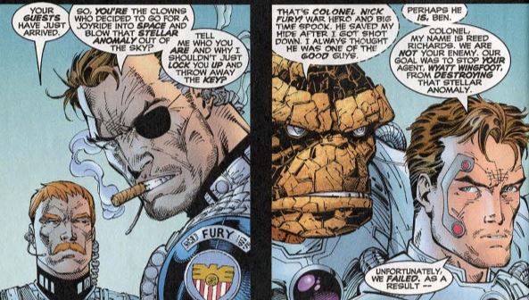 Clobberin’ time: Ben says he knows Nick Fury, that Fury saved his life once during the Gulf War. But then Fury suggests he’s a lot older, saying he hasn’t seen Namor since “the big one.”