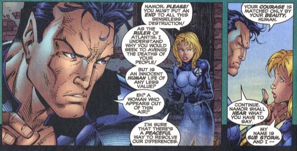 Fade out: Namor is once again attracted to Sue, but not just for her beauty but also her intelligence and willingness to fight to do the right thing.