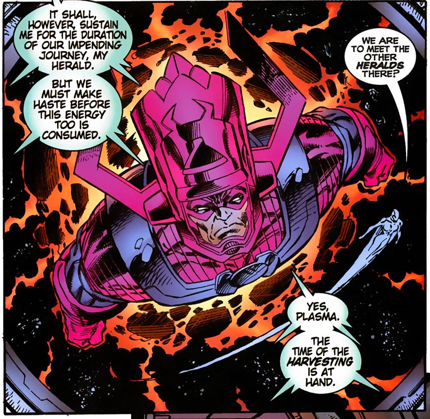 Four and a half: This is the first appearance of Galactus’ herald Plasma. Further, Plasma only appears in the Heroes Reborn universe, and nowhere else in continuity. Because Heroes Reborn was created by Franklin’s reality-bending powers, this makes Plasma entirely a figment of Franklin’s imagination.