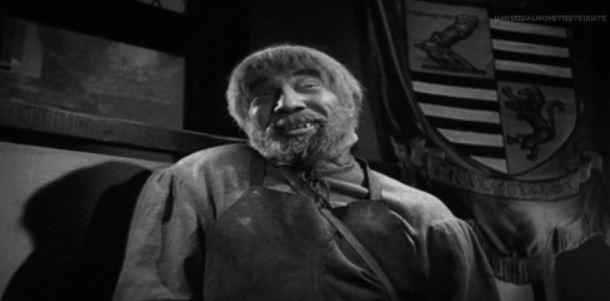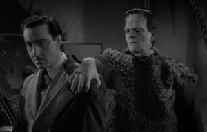 Monster! Despite the “F” name in the title, discussion of this movie begins and ends with Ygor, in a landmark performance by Bela Lugosi. Ygor is not a hunchback but a brute with a permanently broken neck. Despite being a creepy outside, Ygor is a master manipulator, able to talk the young baron as well as the townsfolk to go along with his schemes.