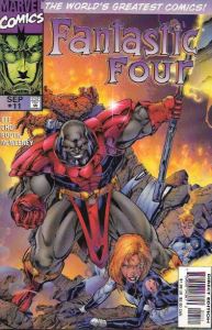 Reading the Fantastic Four comics from the start. Here’s vol. 2 #11, and how much was Marvel done with the Heroes Reborn event by this point? Skip to the end of the issue where there are three pages of ads promoting the upcoming Heroes Return retcon, going so far as to spoil the twist about Franklin in the ads. Before that, though, our heroes fight Terrax.