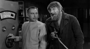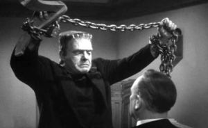 Here’s what happens: Ygor and Frankenstein’s monster, having survived the events of Son of Frankenstein, eventually run into Dr. Frankenstein’s other son, Ludwig. A plot is concocted to “fix” the monster by giving him a new brain. But whose brain?!?