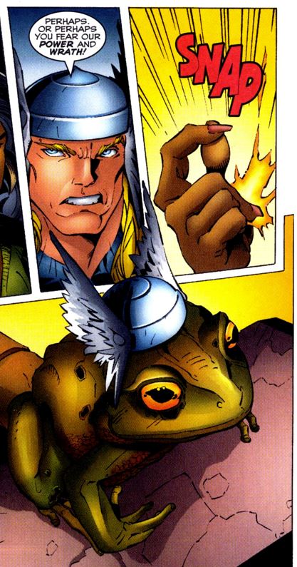 Why is a Thor a frog? It’s a reference to a famous Walt Simonson Thor comic in which Loki transformed Thor into a frog, only for Thor to fight back after transforming again into a half-Thor, half-frog form. Since then, Marvel keeps coming up with ways to bring back “Throg” as his own character.