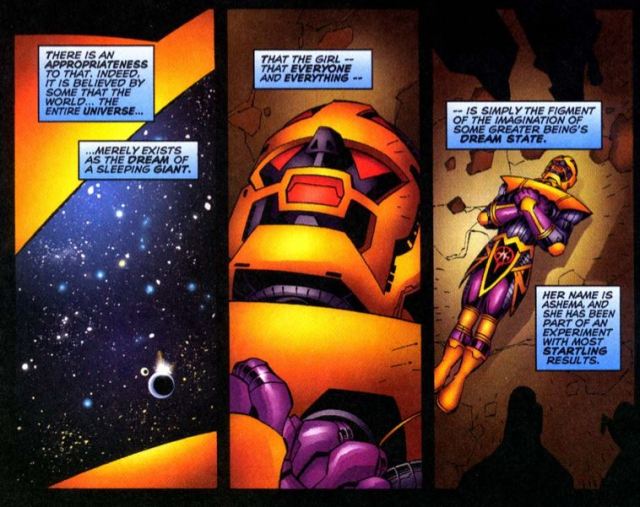 On the last page, we see the stranger Dr. Strange spoke to earlier. It’s Eternity, the living embodiment of reality itself. Eternity is now the keep of Franklin’s sphere. Eternity muses whether the dreams of a Celestial could be figment of someone else’s imagination. Perhaps we all are.