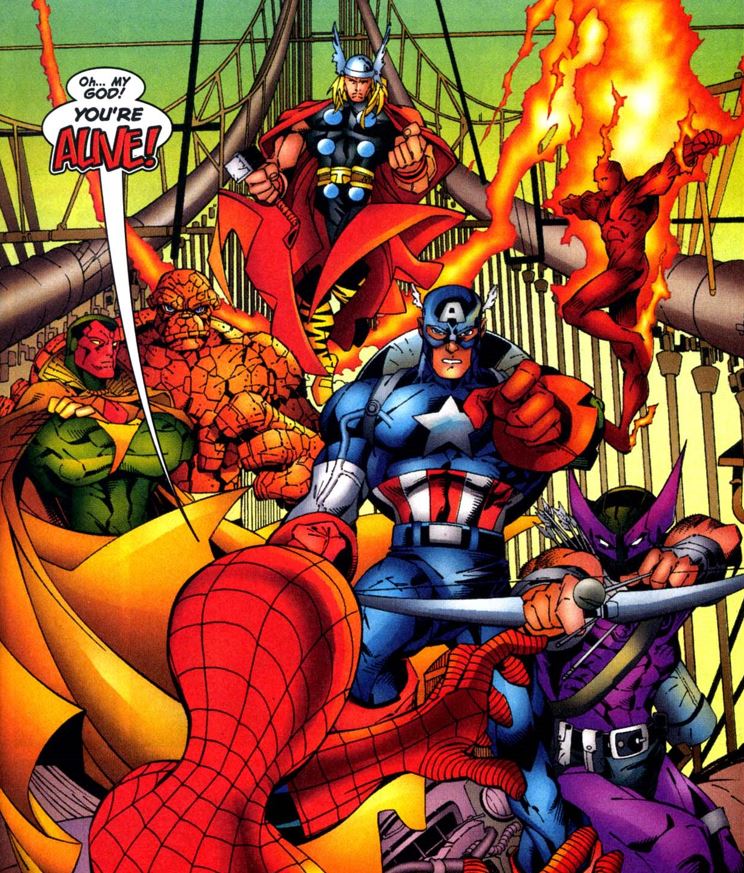 By now, everyone knows the story – everything that happened in the Heroes Reborn Universe (hereafter called “HRU”) took place in a pocket universe created by Franklin Richards’ reality-bending powers. When a bunch of superheroes sacrificed their lives to defeat supervillain Onslaught, Franklin subconsciously created another universe for them to live, where their lives began anew with no memory of their previous lives in the Marvel Universe (hereafter “MU”). We the fans already know this, but how did this play out in the actual comics, exactly?