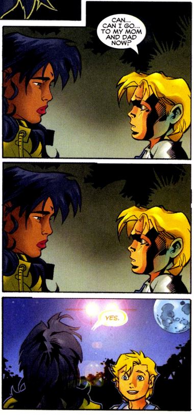 Four and a half: Using Franklin’s powers to fix comic continuity might be convenient, but it’s also consistent, as there’s been a fear from the beginning that his powers represent a potential threat to reality itself. Throughout his appearances in Cable, X-Man, Generation X, and Daydreamers were all about Franklin coming to terns with his parents’ deaths, only for him to turn a corner in Heroes Return, where he succeeds in bringing them back.