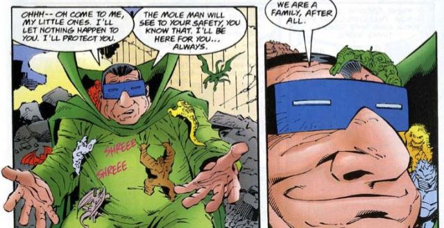 Trivia time: There’s mention of the Mole Man’s former love Nala, who left him for fellow underground kingdom ruler Tyrannus, a nice continuity nod for longtime fans. But wait – Nala was last seen in the short-lived Fantastic Four Unlimited #4 where she and the Mole Man reunited. This means there was an untold story at some point where she dumped him and went back to Tyrannus again.