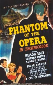 Monster! It’s not until 53 minutes into this 90-minute movie that we see the Phantom in all his masked glory. Claude Rains definitely gives it his all, though, starting as a sad sack, then becoming menacing, and ending in sadness again.