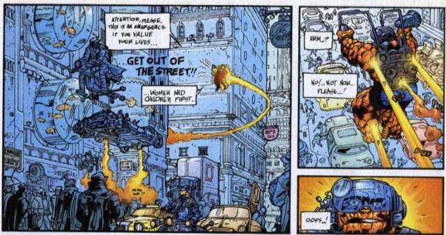 The comic never says that the FF’s new power levels are undone, but there’s no mention of them being dangerously over-powered next issue, so let’s assume it was reversed. The Marvel Wiki, however, does insist that the team was teleported back to their home universe after this, so that’s something.