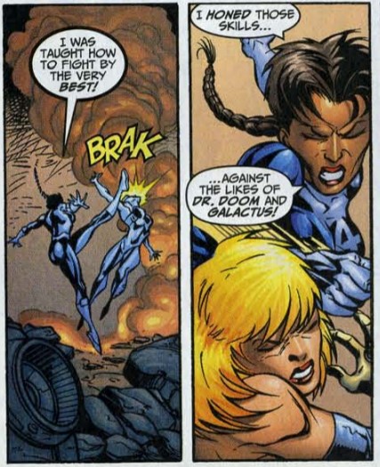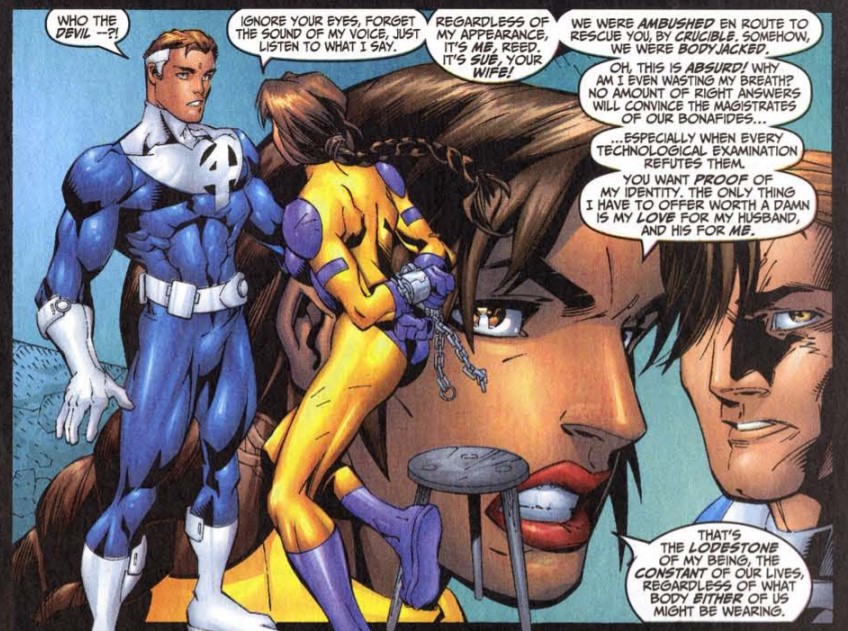 Fade out: Sue convinces Reed that it’s really her in another body simply by saying that she can’t convince him, only that she loves him. It’s enough, as it works.