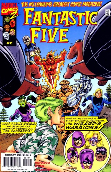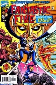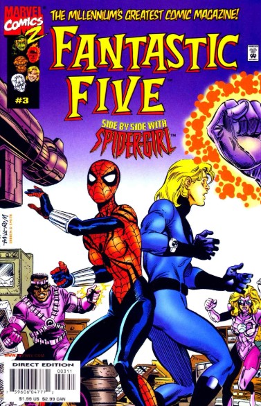 Fantastic Five takes place in the MC2 continuity, which takes place approximately 15 years in the future. The Marvel heroes are now a little older and wiser, and there’s a new class of young up-and-coming heroes. The main series of MC2 was the cult favorite Spider-Girl, which was saved from cancellation (for a while) by a fan letter-writing campaign. The MC2 line also gave us A-Next, Wild Thing, and American Dream.