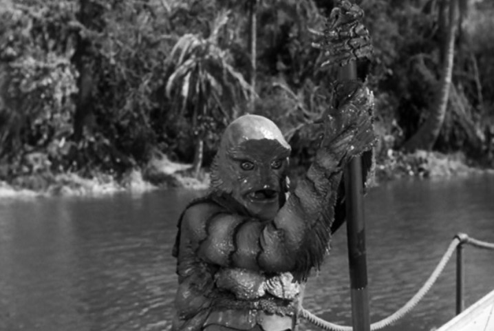 Here’s what happens: After discovering a mysterious fossil, a group of scientists travel deep into the Amazon for more. They encounter the amphibious Creature, who foils their efforts to leave, and takes an interest in Kay, the expedition’s only female member.