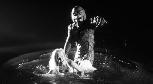 Hapless humans: Helen is the girl in question, but she’s a scientist herself and takes part in experimenting on the Creature. There’s also a rival scientist, Joe, who also has eyes for Helen and complicates matters. Lucas, the crusty ship captain from the first movie, is back again for more easygoing charm. And yes, that is young Clint Eastwood in his first movie role as a lab tech.