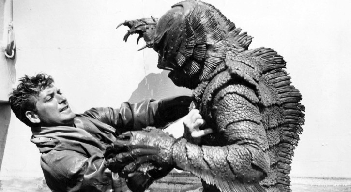 Hapless humans: Helen is the girl in question, but she’s a scientist herself and takes part in experimenting on the Creature. There’s also a rival scientist, Joe, who also has eyes for Helen and complicates matters. Lucas, the crusty ship captain from the first movie, is back again for more easygoing charm. And yes, that is young Clint Eastwood in his first movie role as a lab tech.