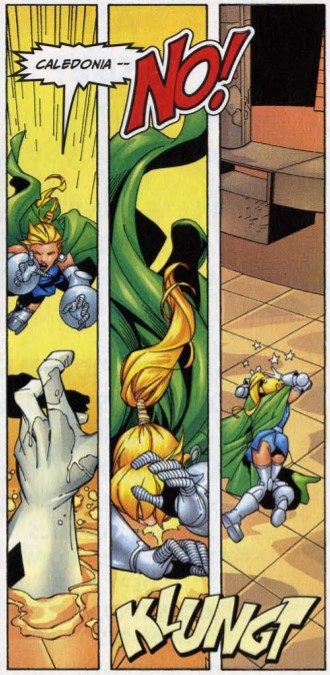 Our gal Val: Although Valeria does a lot of fighting in this issue, there’s no indication of what powers this version of her might have. The Marvel Wiki is no help, saying this Valeria potentially has psionic powers, but no real answer.
