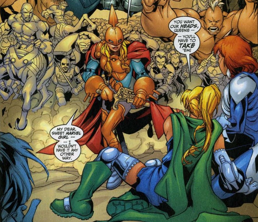 Then there’s Hippolyta. She’s queen of the Amazons, operating out of Themiscrya. You might think that sounds like Wonder Woman’s mother, and yes they are both derived from the same Greek myth. She’s had a lot fewer appearances in the Marvel Universe, usually as a companion/sidekick to Hades. When she appeared in Fearless Defenders, Marvel tipped the hat to DC by giving Hippolyta the codename Warrior Woman, which she hated.