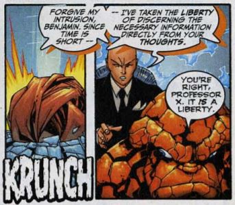 Reed considers powering up Sue so that she can surround the entire Earth with a force field, but then he determines the storm is targeting the sun, not the Earth. Everyone makes preparations. Johnny and Caledonia prepare Pier 4’s extra rooms for possible refugees. Ben contacts the Avengers, who pledge their support, and the X-Men, only to learn they have disbanded.