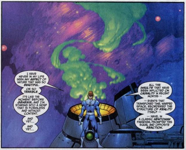 Four and a half: Franklin’s fate will later be revealed in the Fantastic 4th Voyage of Sinbad mini-series. There’s some speculation that the chaos storm was somehow caused by his creating the Heroes Reborn universe. We’ll later learn that is partially true.