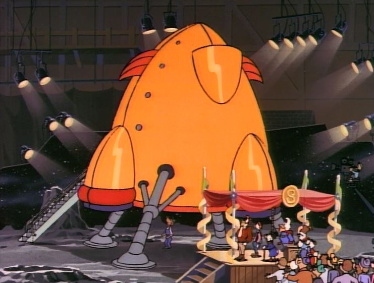 Fearful for his job, Courage hopes to butter up to the kids, while also developing a rivalry with real-life pilot/adventurer Launchpad. Courage throws Launchpad off the set, only for him and the boys to discover the realistic ship is… a real spaceship! They take off for space, with Launchpad stowing away. The kids and Courage think they’re acting on the TV show, while Launchpad flies the ship for real.