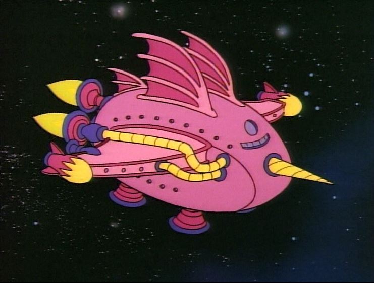 The plot is further complicated when the ship encounters an alien spacecraft. The aliens, led by Commander Kronk, is plotting to destroy the Earth and use it for fertilizer (!). Courage flees with his ship, so Launchpad and the kids fight the aliens and take over their ship. They pursue Courage, get back their ship, and get back to Earth. Scrooge later converts the dilapidated studio into a space museum, with Major Courage as a tour guide.