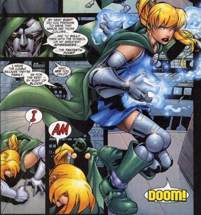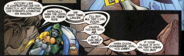 Our gal Val: It takes Valeria some time to remember that she is from the future, so there’s way this timeline’s Dr. Doom or his generals would know her. She still treats Doom as if he’s her loving father. Doom insists he has no sire, yet he can see potential in the girl.