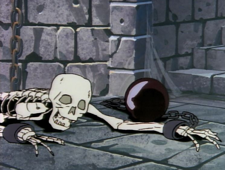 Foul fowls: Magica’s spooky new house in Duckburg comes complete with an incredibly creepy human-looking skeleton in basement. We’ll never know what the story behind this is, as the house never appears again.