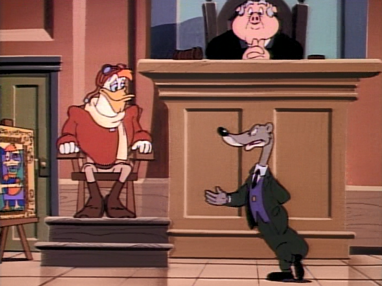 Fasten your seatbelts: Launchpad shows up during the trial in full comic relief mode, accidentally blurting out info that hurts rather than helps Scrooge’s case.