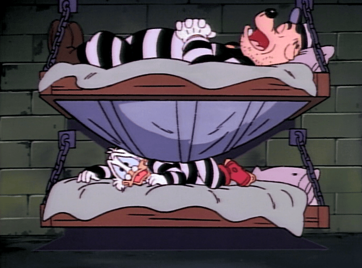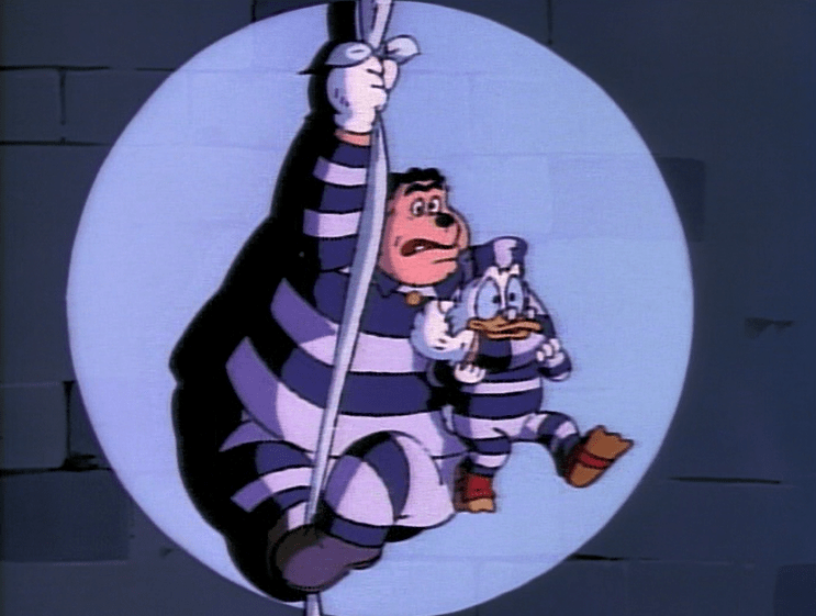 Scrooge’s friendship with Mad Dog goes too far, when Mad Dog makes an escape attempt and insists Scrooge join him. The nephews go over the evidence, discovering that Glomgold framed Scrooge. Simultaneously, Scrooge discovers Mad Dog was only in jail because Glomgold framed him as well. Scrooge gets a pardon, Mad Dog is reunited with his long-lost mom, and the judge decides that Glomgold is to be punished by putting a painting of Scrooge in his home for the next 15 years.