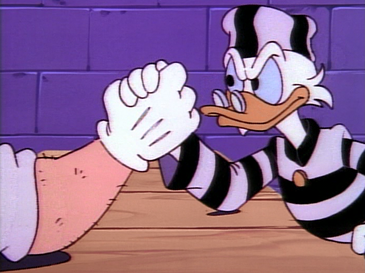 Humbug: When the nephews visit Scrooge in jail, he says he misses them more than he misses his money. This furthers my thesis that the show’s series-long arc for Scrooge is not him being a rich jerk, but him learning to put his family before his wealth.