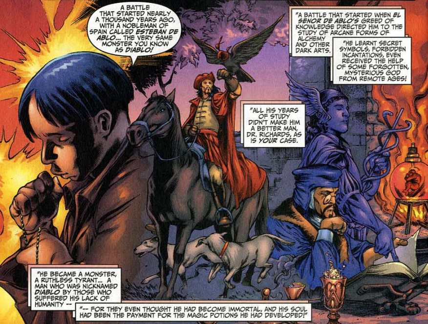Unstable molecule: Reed says Dr. Strange has lent him some books about Diablo (where’d he get those?) but the Deacons are barely mentioned in them.