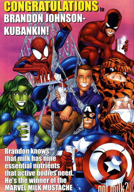 Fantastic fifth wheel: She-Hulk shows up in this ad, featuring the winner of a “you can get drawn into a Marvel comic” contest.