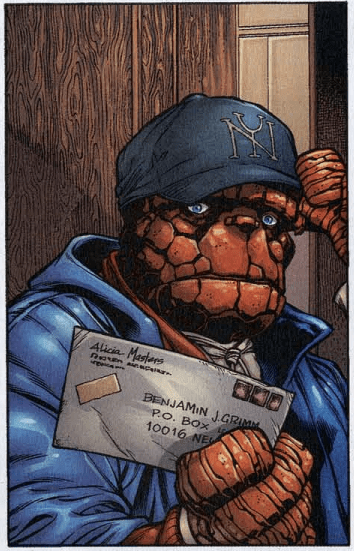 Johnny signs the deal to make the movie, titled “Blaze of Glory.” The issue ends back at Damage Control headquarters, where the FF have been given guest rooms to stay in. Reed gets a call from the scientist Noah, who asks for his help. On the last page, Ben is shown with another unopened letter from Alicia. He leaves and goes for walk through the sidewalks of NYC, and that’s our…