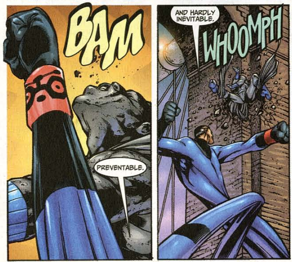 Trivia time: Who is Triathlon? Formerly the villain 3-D Man, he rebranded when he became a good guy, but had trouble getting along with the other Avengers. After a battle against Kang, he left the Avengers and became 3-D Man again. He ended playing a key role during the Secret Invasion event.