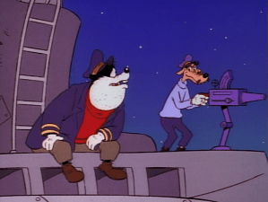 Foul fowls: Sharky is based on Disney go-to villain Pete, so much that the Disney Wiki alleges that this is Pete playing the role of Sharky. Sharky’s sidekick is Yardarm, who acts as a voice of reason to Sharky’s schemes.