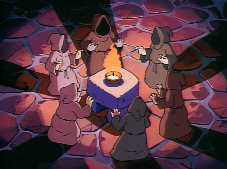 Scrooge and the kids explore the castle, encountering the hound and a mysterious hooded figure. Scrooge investigates to find a group of druids living in the castle. Turns out the Scots drove the druids out of their homes, so the druids drove the McDucks off their land. He concocts a Scooby Doo style plan to trap the hound.