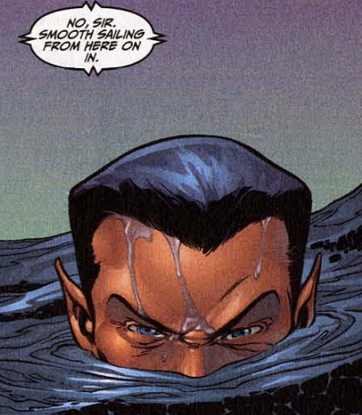 Back to the Negative Zone, the Trapster sends the generators through some kind of portal. Then the pilgrims’ home is rocked with a earthquake. Jacob says he can sense a “distancing,” and Reed suspects that the N-Explorers are involved. He fears that the walls between Earth and the Negative Zone are becoming unstable. Hellscout offers his aid, saying he can track anyone, anywhere. Cut to Earth, where a Gideon Trust facility out on the ocean receives the generators, and Namor the Sub-Mariner watches from a distance.