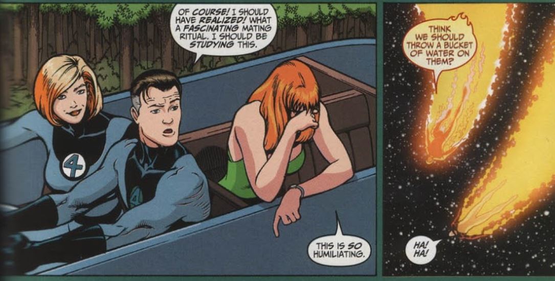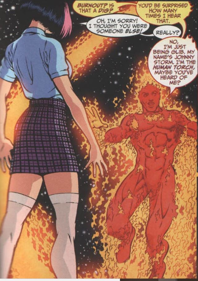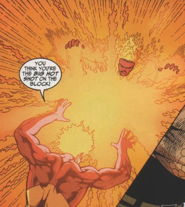Flame on: We’ve never seen Johnny knocked out from absorbing too much heat, but then we have to remember that this whole story is an alternate universe.
