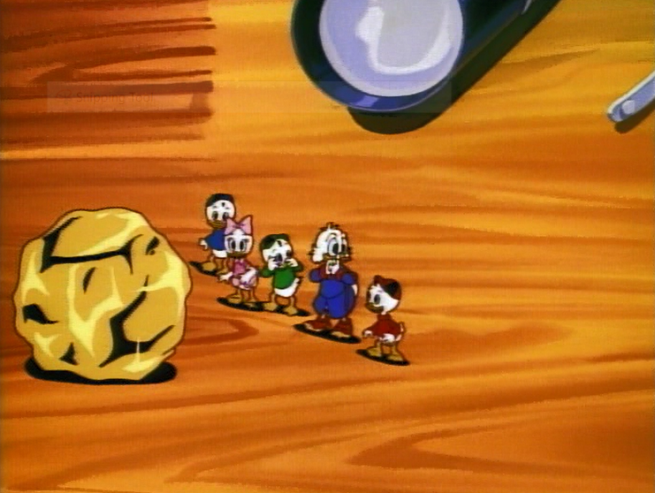 After reaching Gyro, the heroes return to Scrooge’s mansion, unaware that the aliens have returned and taken back the manipulator. Fortunately, the aliens’ ship gets caught in some glue Launchpad was using earlier in the episode. They return everyone back to their original size.