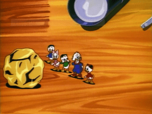 Humbug: My thesis is that the series-long arc of DuckTales is Scrooge learning that his friends and family are more important than his wealth. This episode would have us believe Scrooge has learned his lesson when he chooses not to squish a bug at the end. But… has he learned a lesson? All this life-threatening peril happens because of his greediness.