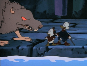 Down in Duckburg: Scrooge’s mansion is depicted as being a hilltop overlooking the city, when it hasn’t in previous episodes. Maybe he’s so rich that he owns two mansions.