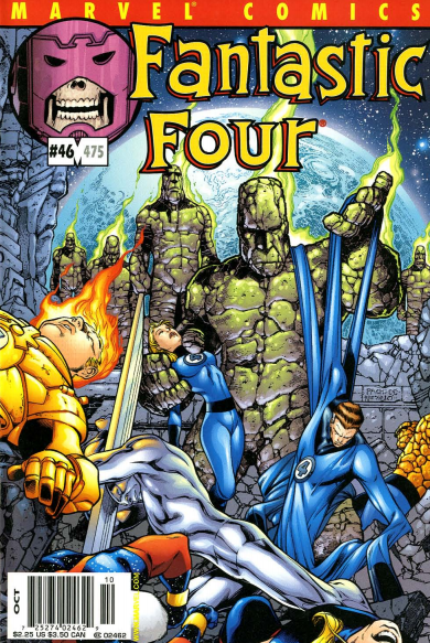 New math: It’s around this time that marvel starts dual-numbering issues, so this is both vol. 3 #46, and legacy #475. This means the anniversary 450th issue was vol. 3 #21, the one where the FF went into the underworld and fought Hades and Hippolyta.