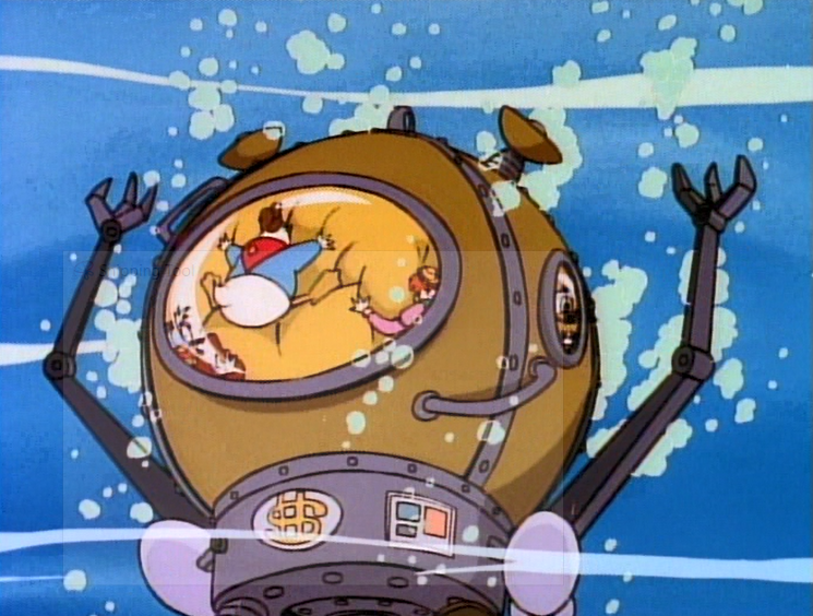 Fasten your seatbelts: Launchpad is disappointed this is an undersea mission and not a sky mission, so he submerses the Gold Digger by flinging it through the air and into the ocean, just so he can say he flew it.